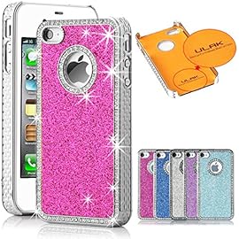 Pandamimi Deluxe Hot Pink Chrome Bling Crystal Rhinestone Hard Case Skin Cover for Apple iPhone 4 4S 4G With Front and Back Screen protector and Pink Stylus